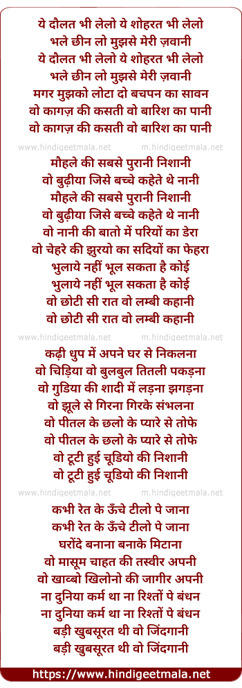 Lyrics of Ye Daulat Bhi Lelo - ये दौलत भी लेलो