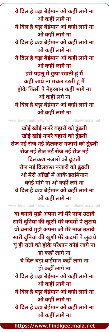 Lyrics of Ye Dil Hai Bada Beiman - ये दिल है बड़ा बेईमान