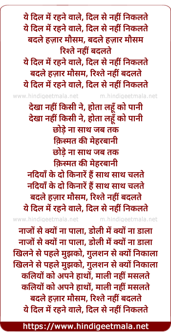 Poetic Translation - Lyrics of Ye Dil Me Rahanewale (Part - Lv) - ये दिल में रहने वाले, दिल से नहीं निकलते