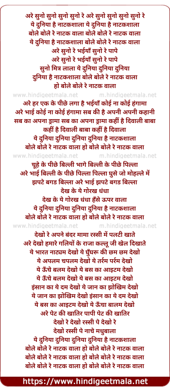 Lyrics of Ye Dunia Hai Natakshala - ये दुनिया है नाटकशाला