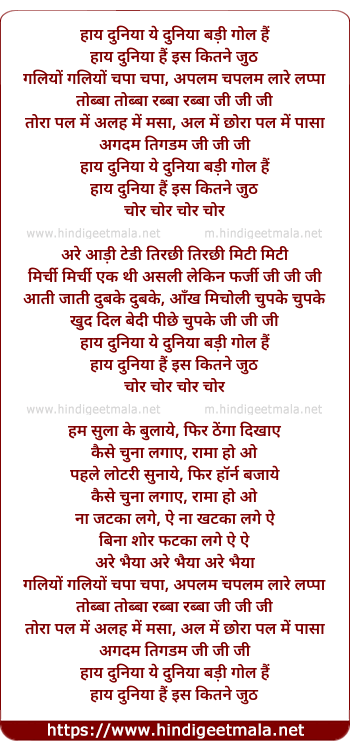 Lyrics of Ye Duniya Badi Gol Hai - ये दुनिया बड़ी गोल हैं