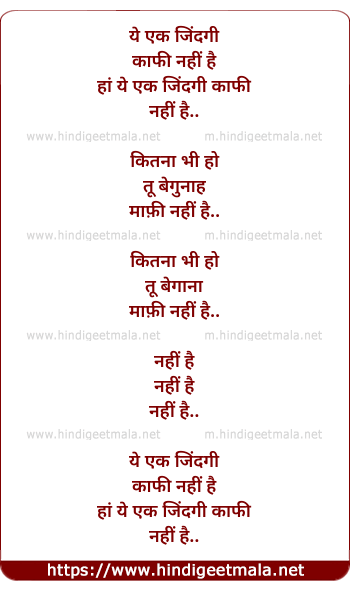 Lyrics of Ye Ek Zindagi Kaafi Nahi Hai - ये एक ज़िन्दगी काफी नहीं है