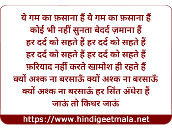Lyrics of Ye Gham Ka Fasana Hai - ये गम का फ़साना हैं ये गम का फ़साना हैं