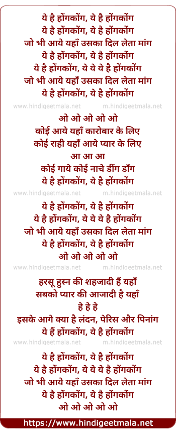 Lyrics of Ye Hai Hongkong - ये है होंगकोंग