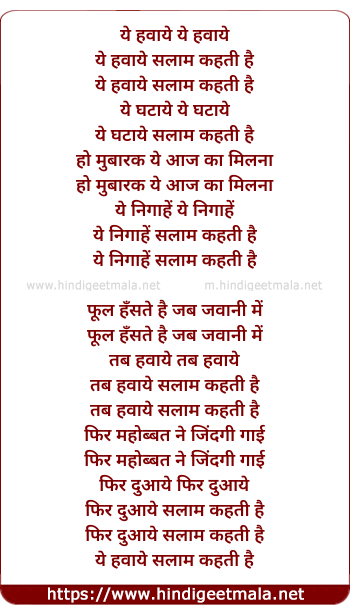 Lyrics of Ye Hawaye Salaam Kehti Hai - ये हवाये ये हवाये