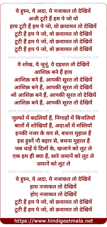 Lyrics of Ye Husn Ye Ada - ये हुस्न ये अदा