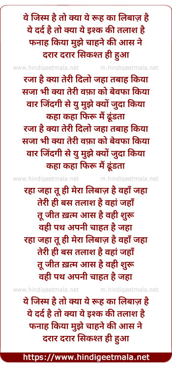 Lyrics of Ye Jism Hai To Kya - ये जिस्म है तो क्या