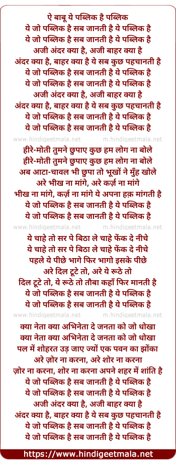 Lyrics of Ye Jo Public Hai - ये जो पब्लिक है