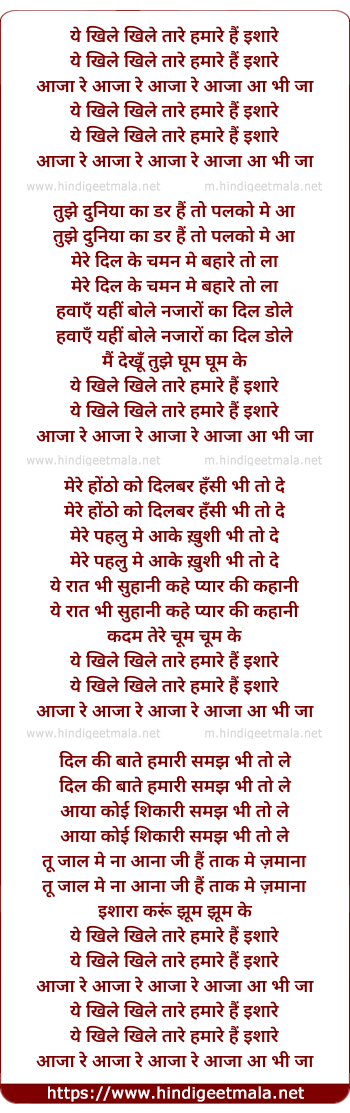 Lyrics of Ye Khile Khile Tare Humare Hai Ishare - ये खिले खिले तारे हमारे हैं इशारे