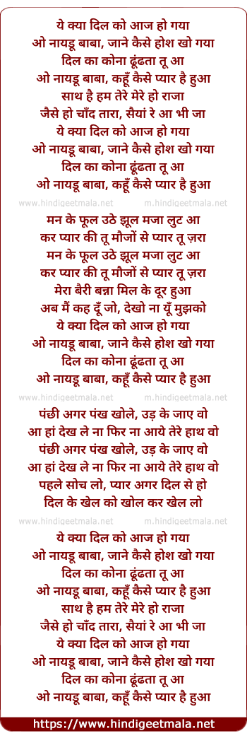 Lyrics of Ye Kya Dil Ko Aaj Ho Gaya - ये क्या दिल को आज हो गया