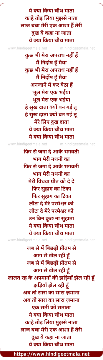 Lyrics of Ye Kya Kiya Chauth Mata - ये क्या किया चौथ माता