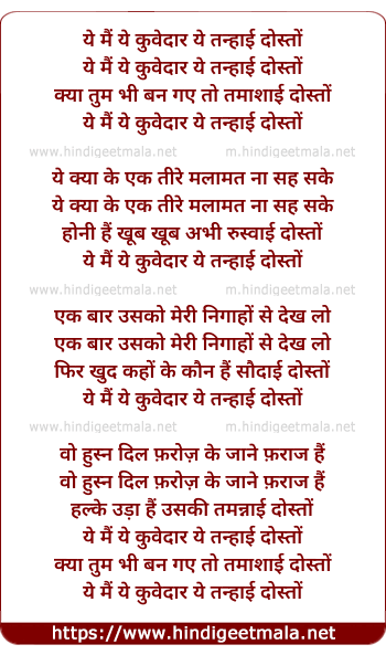 Lyrics of Ye Mai Yeh Koove Daar - ये मैं ये कुवेदार ये तन्हाई दोस्तों