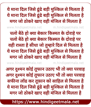 Lyrics of Ye Mana Dil Jise Dhunde Badi Mushkil Se Milta Hai - ये माना दिल जिसे ढूंढे बड़ी मुश्किल से मिलता है