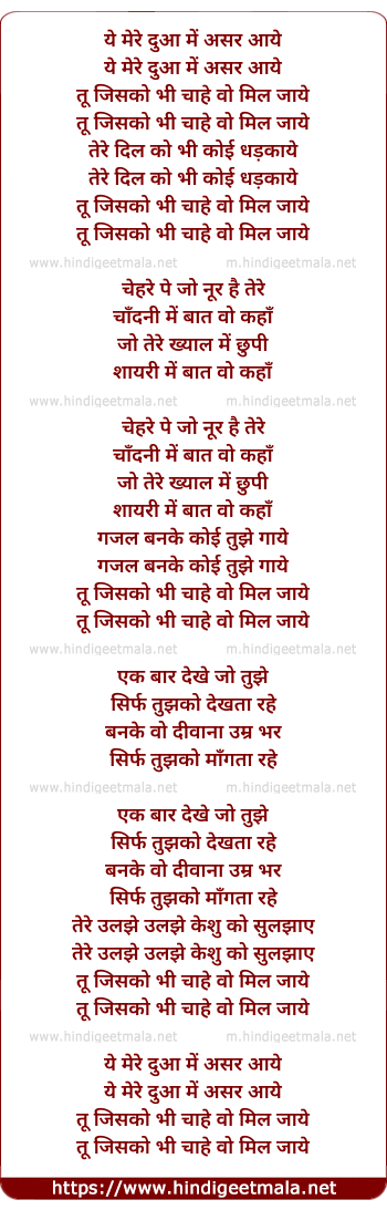 Lyrics of Ye Meri Dua Me Asar Aaye - ये मेरी दुआ में असर आये