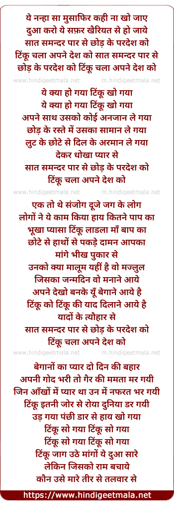 Lyrics of Ye Nanha Sa Musafir - ये नन्हा सा मुसाफिर