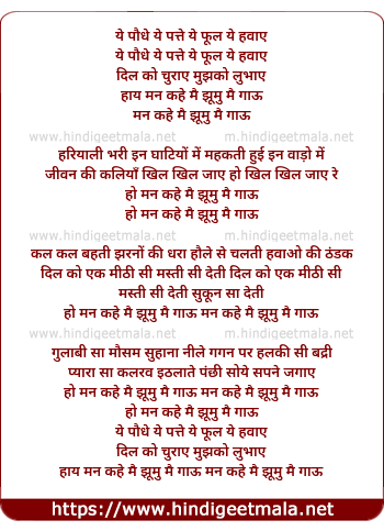 Lyrics of Ye Paudhe Ye Patte Ye Phool Ye Hawaye - ये पौधे ये पत्ते ये फूल ये हवाए