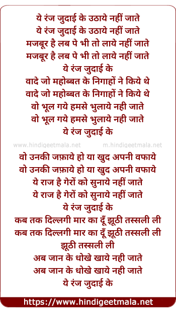 Lyrics of Ye Ranj Judai Ke Uthaye Nahi Jate - ये रंज जुदाई के उठाये नहीं जाते