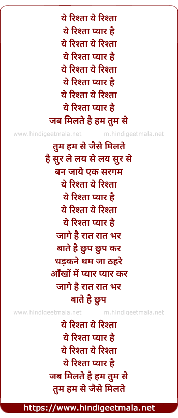 Lyrics of Ye Rishta Pyara - ये रिश्ता प्यारा