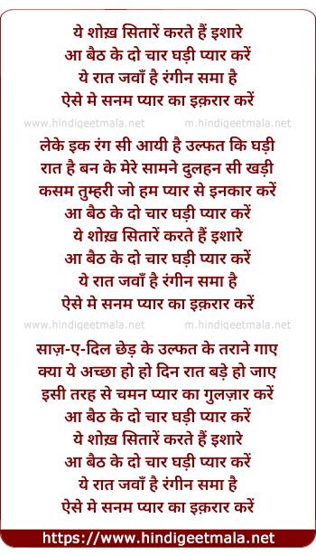 Lyrics of Ye Shokh Sitare Karte Hai Ishare - ये शोख़ सितारें करते हैं इशारे