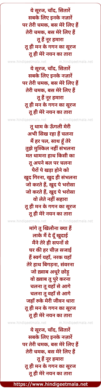 Lyrics of Ye Suraj Chand Sitare (Part 1) - ये सूरज, चाँद, सितारें