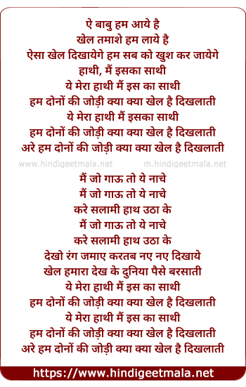 Lyrics of Ye Mera Haathi - ये मेरा हाथी