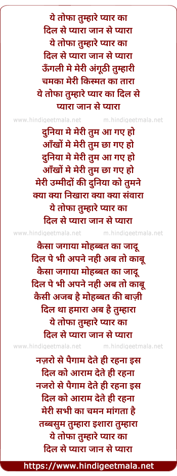 Lyrics of Ye Tohfa Tumhare Pyar Ka - ये तोफा तुम्हारे प्यार का