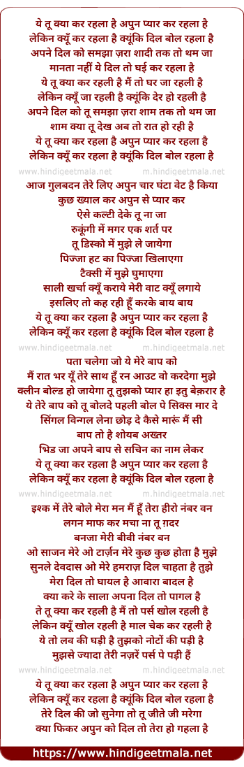 ye tu kya kar rehla hai apun pyar kar rehla hai