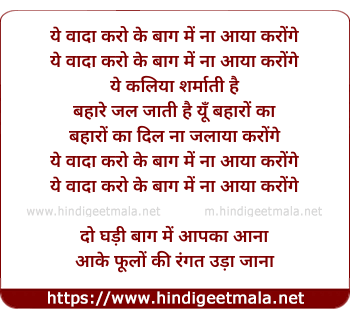 Lyrics of Ye Vaada Karo Baag Me Na Aaya Karogi - ये वादा करो के बाग में ना आया करोंगे