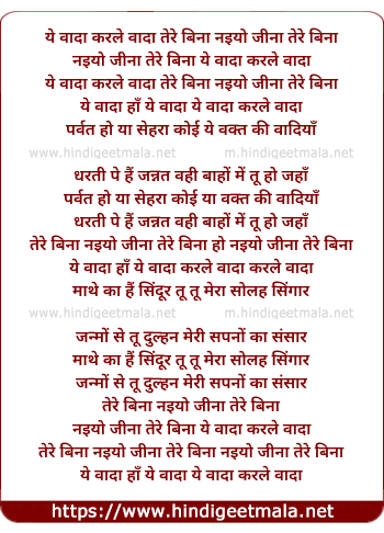 ye wada karle wada tere bina naiyo jina tere bina