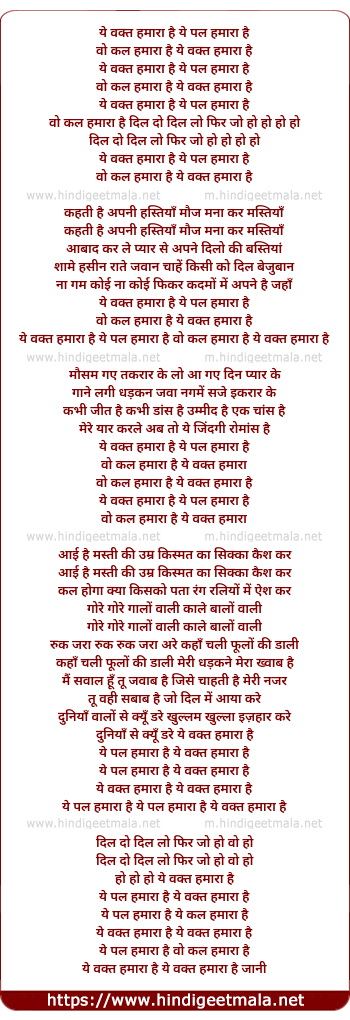 Lyrics of Ye Waqt Hamara Hai - ये वक्त हमारा है