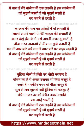 Lyrics of Yeh Baat Hai Meri Knowledge Me - ये बात है मेरी नॉलेज में