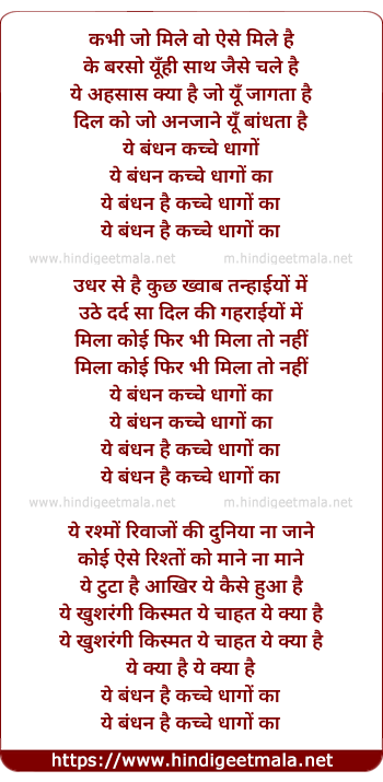 Lyrics of Ye Bandhan Kachche Dhago Ka - ये बंधन कच्चे धागों का