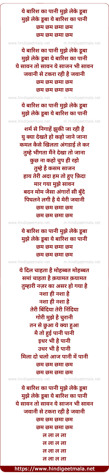 Lyrics of Ye Barish Ka Pani - ये बारिश का पानी