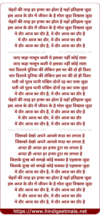 Lyrics of Yeh Daur Aaj Ka Daur - ये दौर आज का दौर