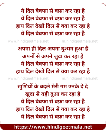 Lyrics of Ye Dil Bewafa Se Wafa Kar Raha Hai - ये दिल बेवफा से वफ़ा कर रहा है