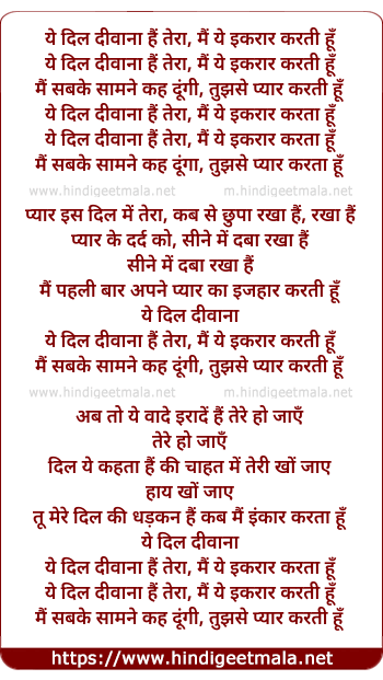 Lyrics of Yeh Dil Deewana Hai Tera - ये दिल दीवाना हैं तेरा