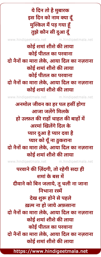 Lyrics of Yeh Din Toh Hai Mubarak - ये दिन तो है मुबारक