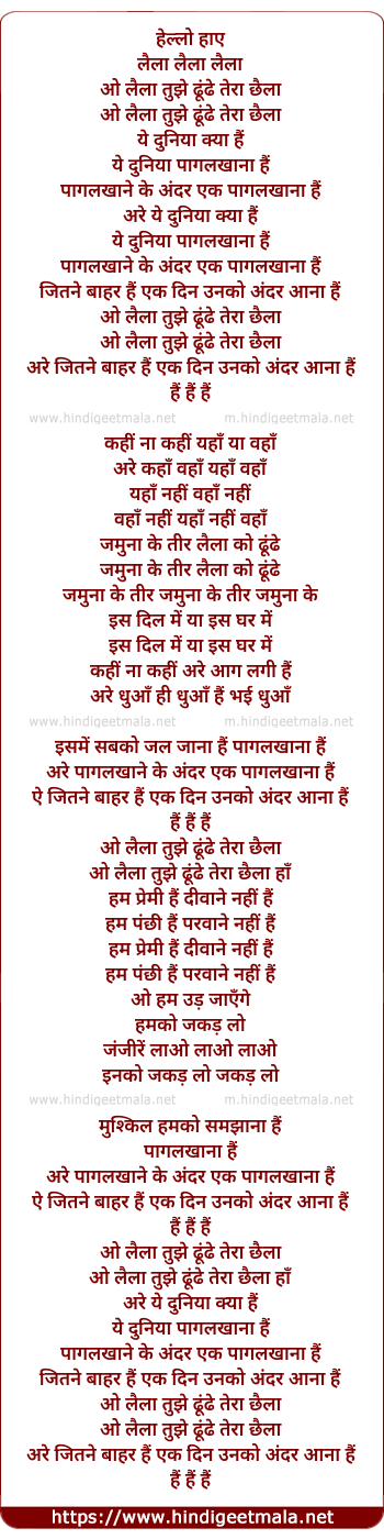 Lyrics of Yeh Duniya Pagalkhana Hai - ये दुनिया पागलखाना हैं