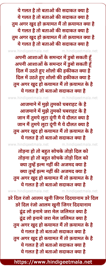 Lyrics of Yeh Galat Hai Toh Batao Kee Sadakat Kya Hai - ये गलत है तो बताओ की सदाकत क्या है