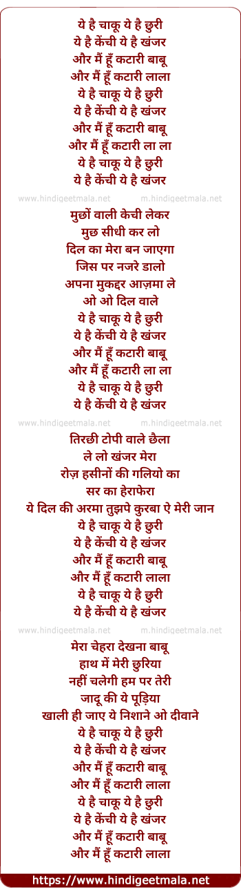 Lyrics of Yeh Hai Chaku Yeh Hai Chhuri