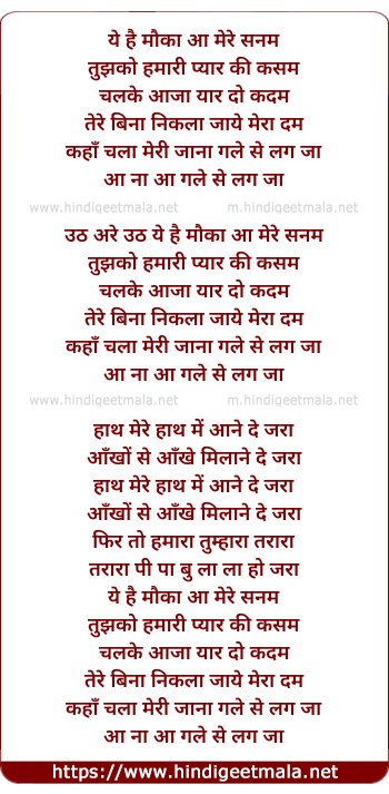 Lyrics of Yeh Hai Mauka Aa Mere Sanam - ये है मौका आ मेरे सनम