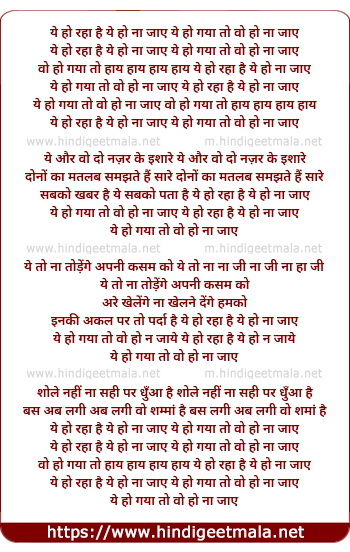 Lyrics of Yeh Ho Raha Hai, Ye Ho Na Jaaye - ये हो रहा है, ये हो ना जाये