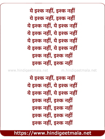 Lyrics of Ye Ishq Nahin - ये इश्क नहीं