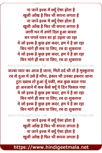 Lyrics of Yeh Jo Ishq Hai - ना जाने इश्क में क्यूँ ऐसा होता है