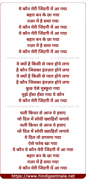 Lyrics of Yeh Kaun Meri Zindagi Me Aa Gaya - ये कौन मेरी जिंदगी में आ गया