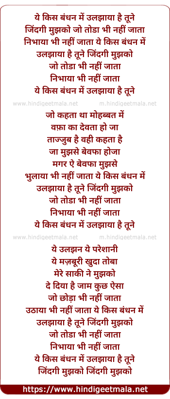 Lyrics of Yeh Kis Bandhan Me - ये किस बंधन में