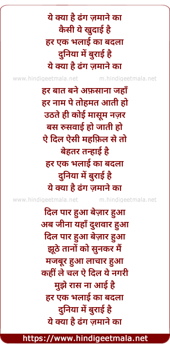 Lyrics of Yeh Kya Hai Dhang Zamane Kaa - ये क्या है ढंग ज़माने का
