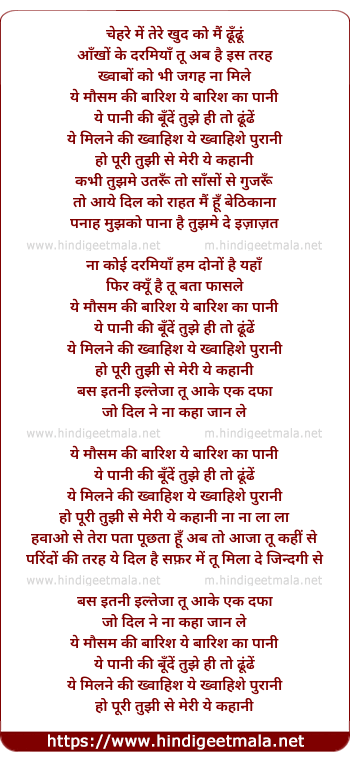 Lyrics of Yeh Mausam Ki Baarish - ये मौसम की बारिश