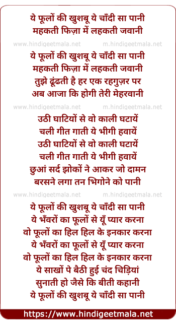 Lyrics of Yeh Phoolon Ki Khushbu - ये फूलों की खुशबू