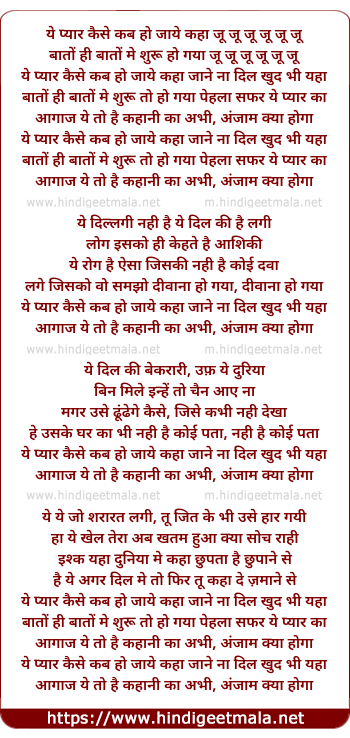 ye pyar kaise kab ho jaye kaha ju ju ju ju ju ju